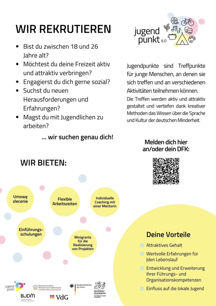 Jugendpunkt ist ein Ort, an dem sich junge Menschen treffen und an verschiedenen Aktivitäten teilnehmen können, die auch auf kreative Weise ihr Wissen über die Sprache und Kultur der deutschen Minderheit vertiefen.