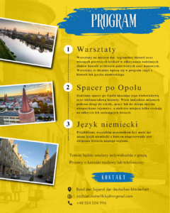 3. Warsztaty językowe – prezentujące język niemiecki jako integralny element historii regionu i codziennego dziedzictwa kulturowego.